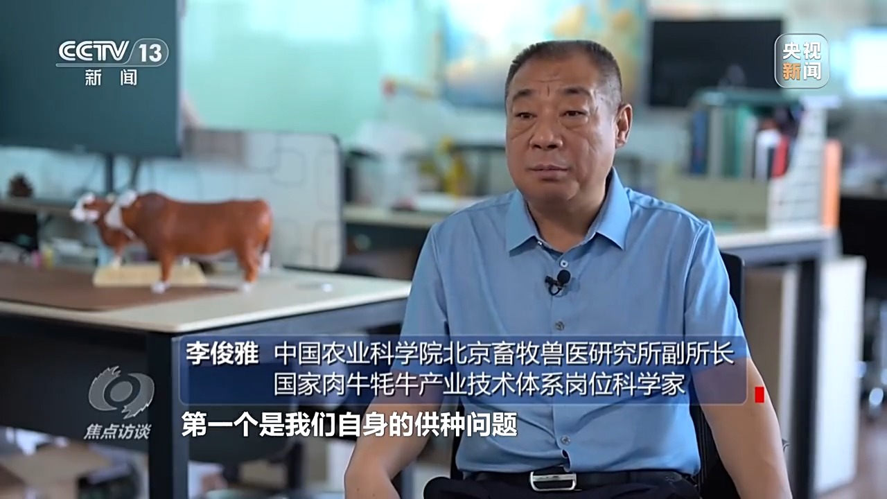 中國農業(yè)科學院北京畜牧獸醫(yī)研究所副所長、國家肉牛牦牛產業(yè)技術體系崗位科學家 李俊雅:“核心種源依然依靠進口,存在很多問題,一是我們自身的供種問題,在特殊時期,如果我們不能從國外進口相應的優(yōu)秀種質,我該怎么做;另外,我們引的這些國外的品種基本上都不是本品種的最優(yōu)秀種牛或者種牛的凍精。我們必須要培育出滿足我們國家主流市場供給型的品種。