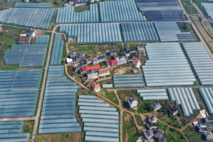 這是江西省贛州市于都縣梓山鎮(zhèn)潭頭村的果蔬種植基地(2021年4月29日攝,無人機照片)。新華社記者 萬象 攝
