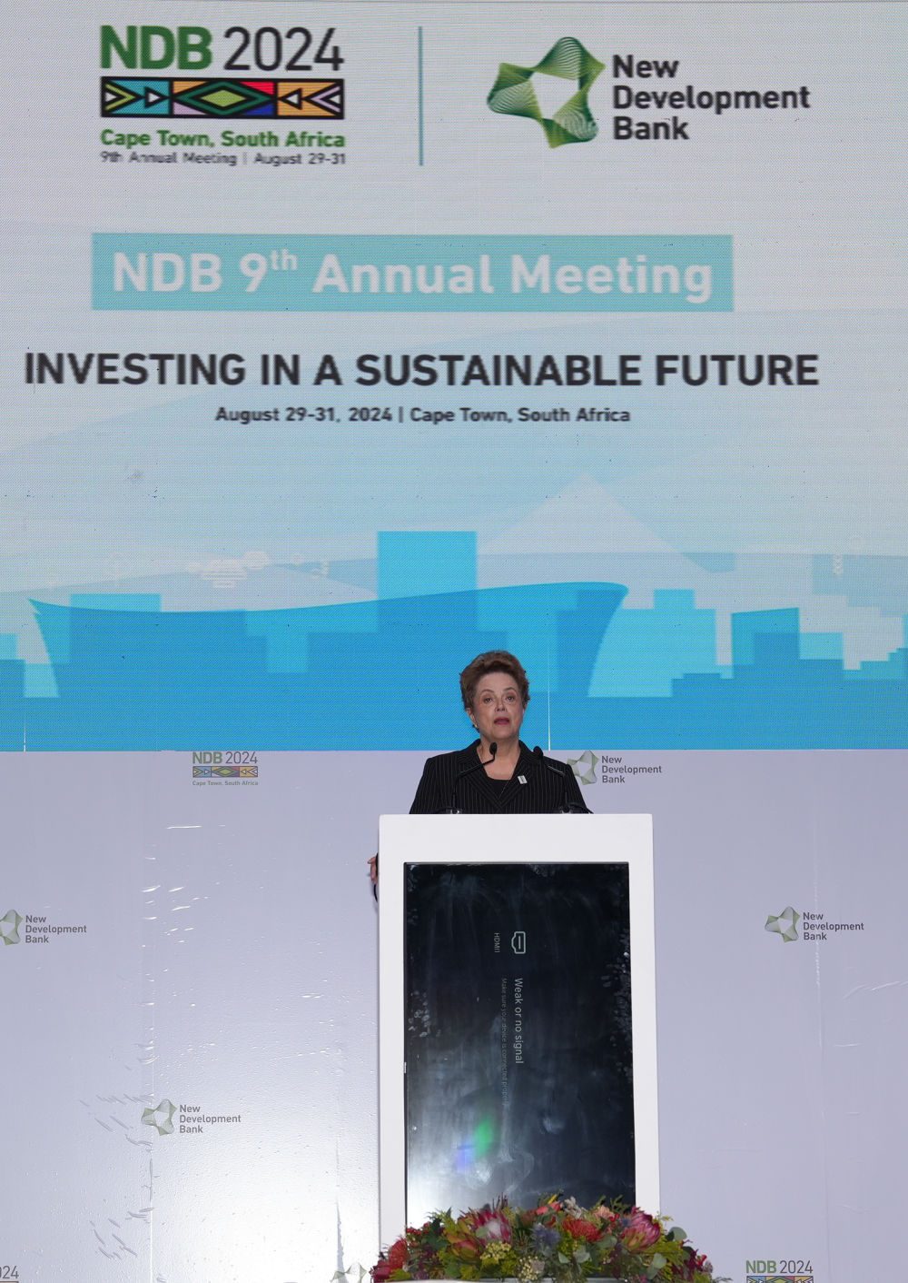 8月30日,在南非開(kāi)普敦,新開(kāi)發(fā)銀行行長(zhǎng)羅塞芙在該行第九屆理事會(huì)年會(huì)開(kāi)幕式上致辭。新華社記者王雷攝