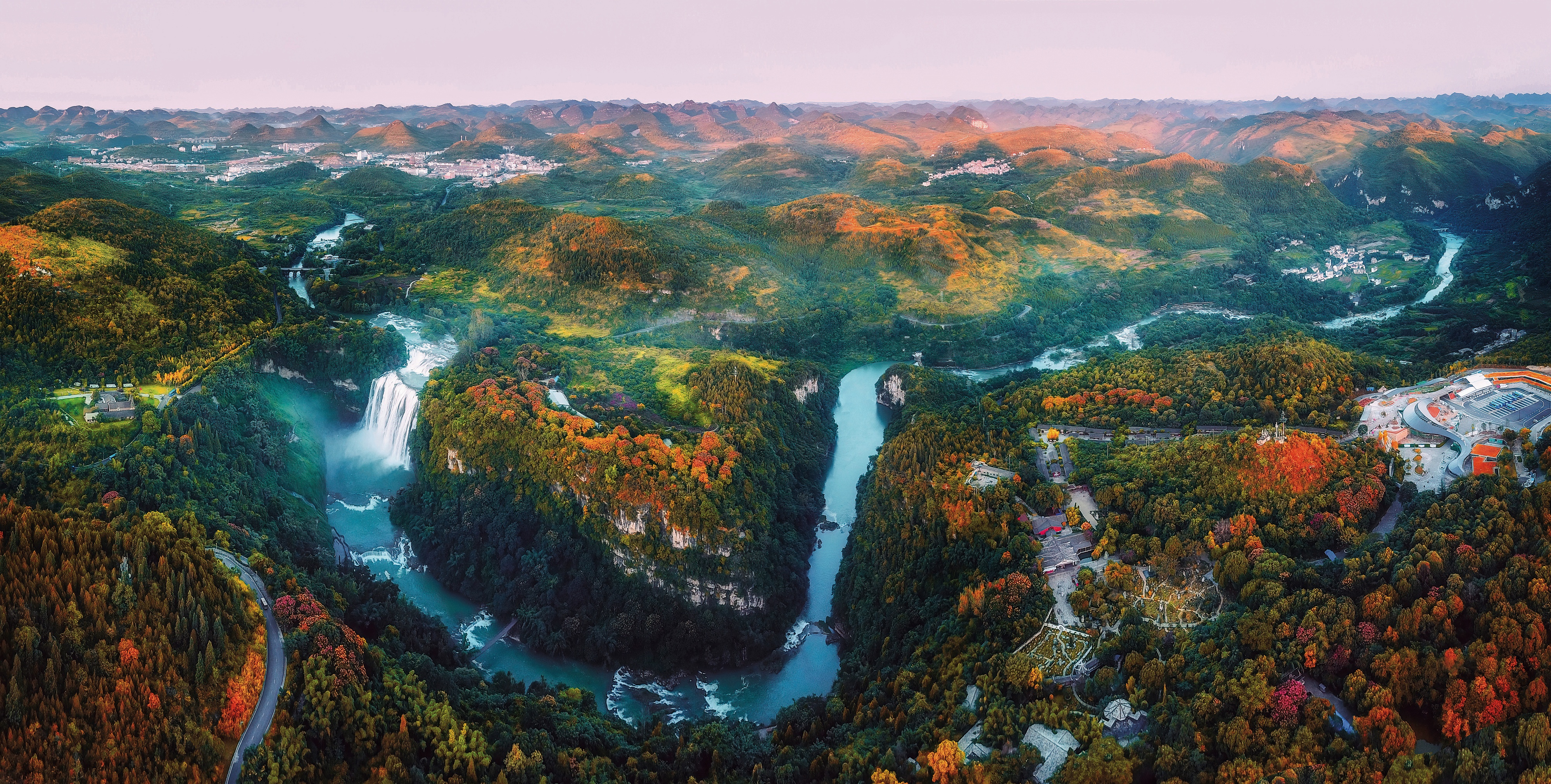 黃果樹(shù)大瀑布全景航拍圖。 楊明亮 攝