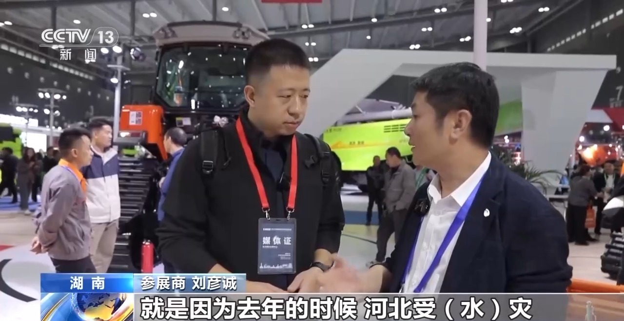 參展商 劉彥誠(chéng):這個(gè)履帶底盤(pán),就是因?yàn)槿ツ旰颖笔芩疄?zāi),很多輪式的玉米收割機(jī)下不了地,干不了活,就委托我們給他們專(zhuān)門(mén)研發(fā)這一款履帶底盤(pán)。
