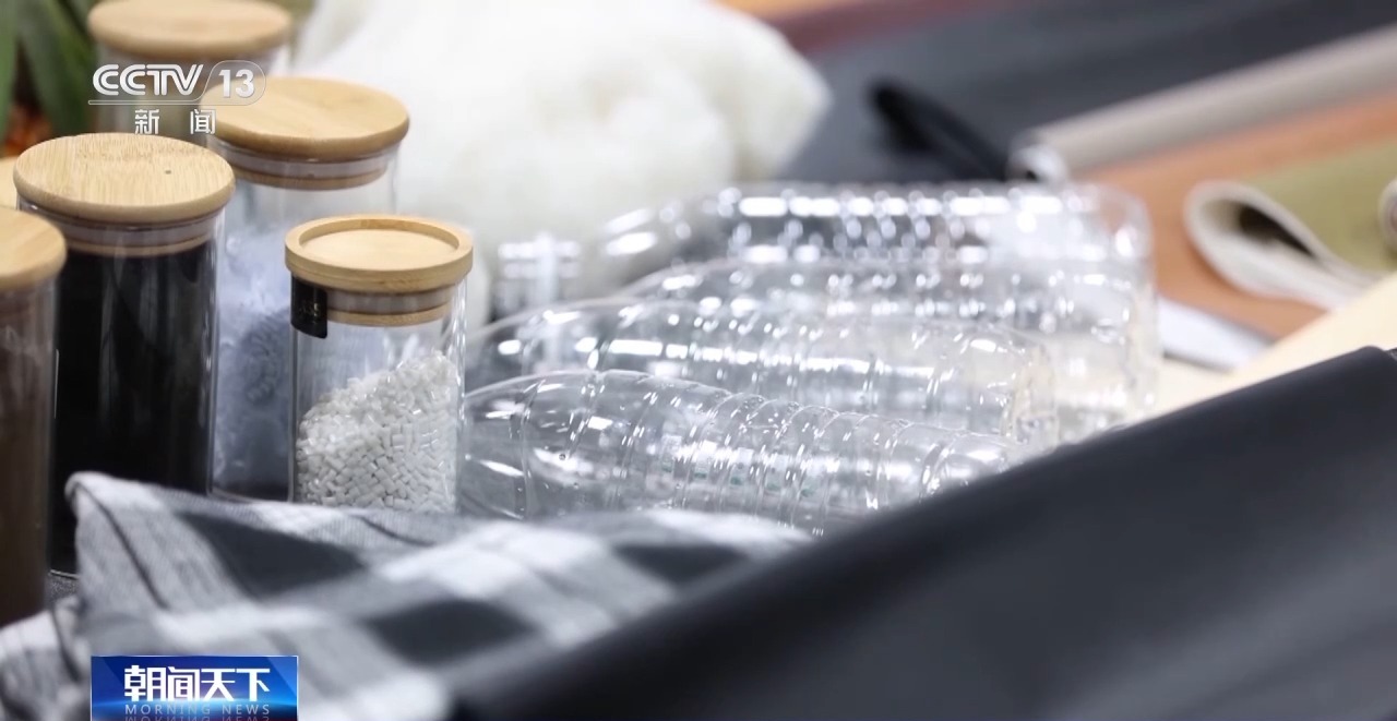 這家參展商,今年生產(chǎn)的可再生環(huán)保材料箱包占比已經(jīng)達到80%。廢棄的礦泉水瓶只是他們使用的眾多環(huán)保材料中的一種。
