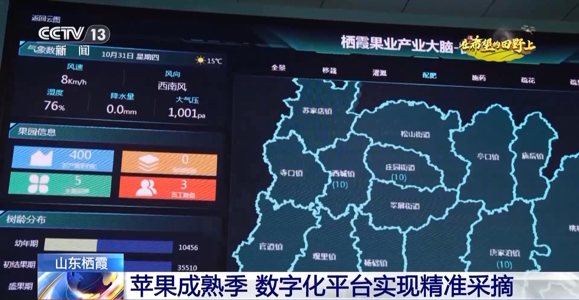棲霞市供銷合作社聯(lián)合社負責(zé)人 李國勇:通過這個大屏,我們可以清楚地看到果樹的生長情況,平臺也會將果樹生長情況相關(guān)信息通報給果農(nóng)進行精準采摘。