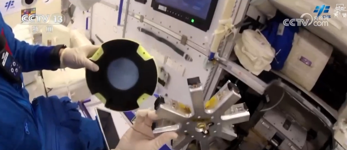 乘組還完成了流體物理實(shí)驗(yàn)柜固液介觀實(shí)驗(yàn)單元樣品盤檢查、實(shí)驗(yàn)樣品更換,無容器柜實(shí)驗(yàn)腔體樣品清理、實(shí)驗(yàn)樣品更換、軸心機(jī)構(gòu)電極維護(hù)等多項(xiàng)操作。
