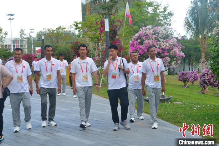 11月25日,海南三亞,第十二屆全國少數(shù)民族傳統(tǒng)體育運(yùn)動(dòng)會(huì)參賽代表團(tuán)在三角梅科博園參觀考察。張?jiān)潞?攝