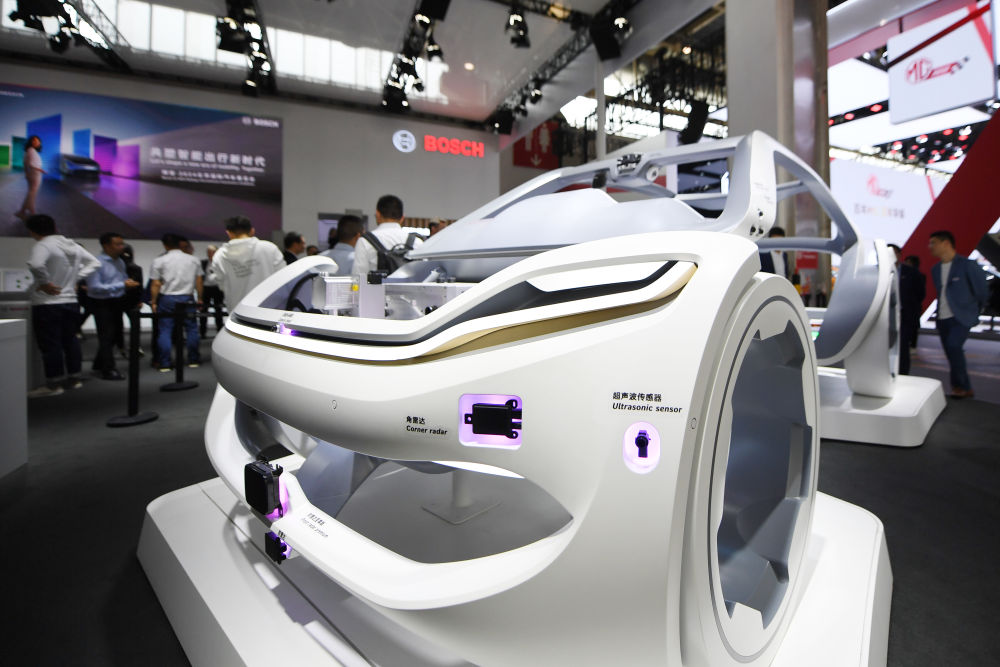 4月25日,在北京車展上,博世公司展臺(tái)展出可用于新能源汽車智能出行解決方案的相關(guān)產(chǎn)品。新華社記者鞠煥宗攝