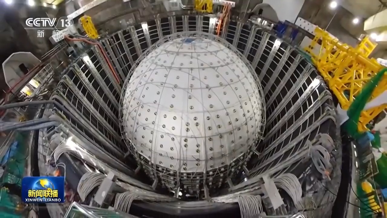 總臺(tái)央視記者 帥俊全:探測(cè)器主體建成之后,在這個(gè)約15層樓高的水池內(nèi)部將會(huì)注滿(mǎn)超純水,然后自上而下在有機(jī)玻璃球體內(nèi)部置換為液體閃爍體。從明年開(kāi)始,整個(gè)裝置將正式運(yùn)行,開(kāi)始捕獲、探測(cè)中微子,設(shè)計(jì)壽命為30年。
