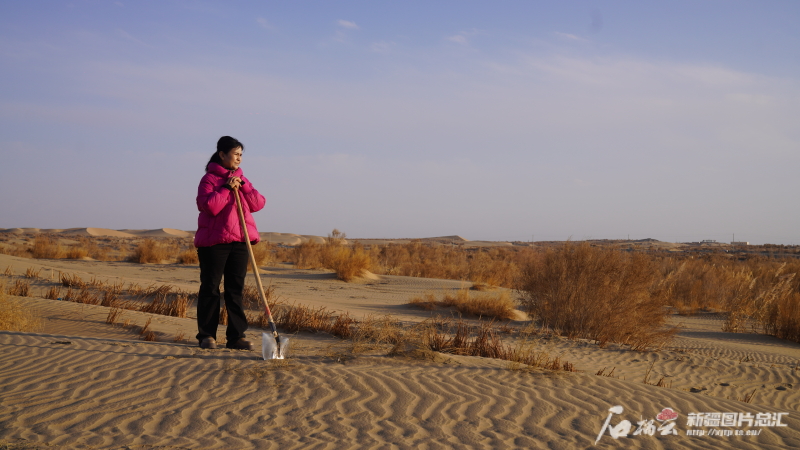 2005年,23歲的帕提古麗來(lái)到且末縣防風(fēng)治沙工作站,成為且末縣首批防沙治沙護(hù)林員。20年來(lái),她不畏艱辛,挖坑栽樹,割蘆葦建草方格,把最美好的年華都奉獻(xiàn)給了這片黃沙之地。曾經(jīng)青春洋溢的少女,如今已步入中年,她用自己的青春換來(lái)沙漠中那一片片生機(jī)勃勃的綠色。
