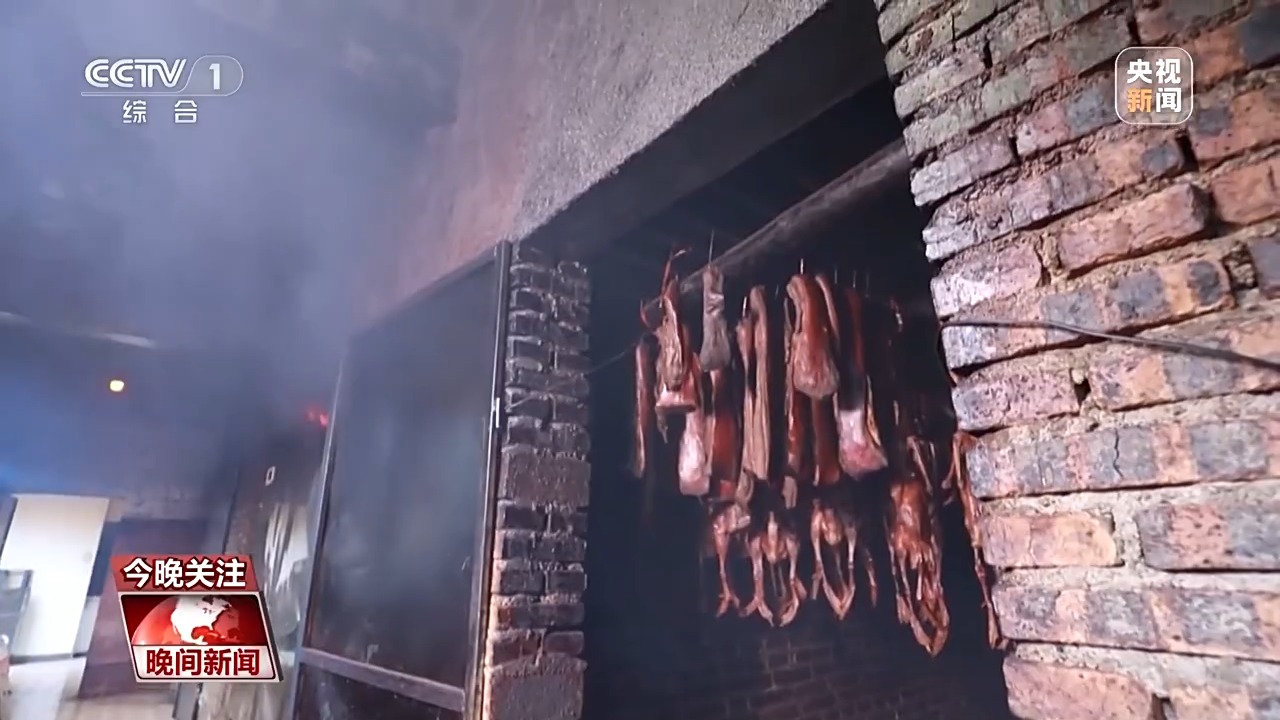 湖南懷化:瑤族村寨 火塘慢煙熏制臘味