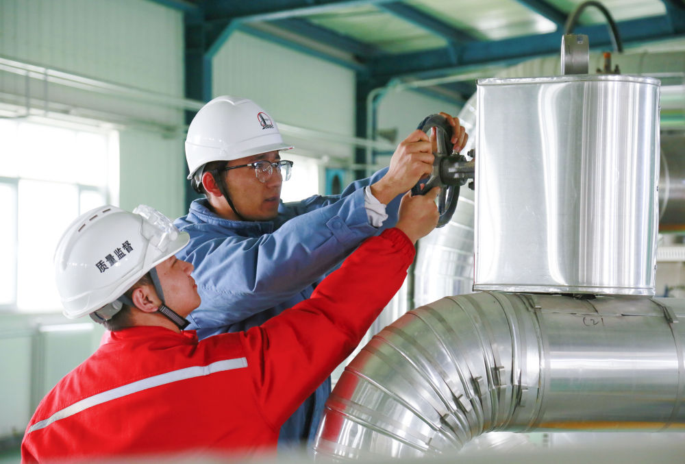 2024年2月22日,在新疆庫車市,中國石化新星新疆綠氫新能源有限公司工作人員對設(shè)備進行巡檢。新華社發(fā)(吐爾松·托胡提 攝)