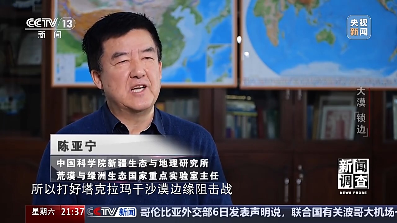 中國科學(xué)院新疆生態(tài)與地理研究所荒漠與綠洲生態(tài)國家重點實驗室主任 陳亞寧:和田地區(qū)大概就是256萬人,由于人均耕地面積少,經(jīng)濟發(fā)展相對也滯后。也是脫貧攻堅成果鞏固和拓展難度最大的一個區(qū)域,所以在打好塔克拉瑪干沙漠邊緣阻擊戰(zhàn),對和田地區(qū)的經(jīng)濟社會發(fā)展、農(nóng)民增收是有著重要意義的。我們帶著隊伍進行了將近兩個多月的實體調(diào)研,那我們調(diào)查什么呢?第一這里的地理環(huán)境、自然生態(tài)條件、水資源情況,同時我們也收集到他們當(dāng)?shù)剡@么多年防沙治沙的一些成功經(jīng)驗和教訓(xùn),我們也進行了訪談,結(jié)果我們就提出了一種從不同生態(tài)條件、不同沙害和不同水源條件下如何防沙治沙,實現(xiàn)沙漠鎖邊等一些建議、措施和總體規(guī)劃。