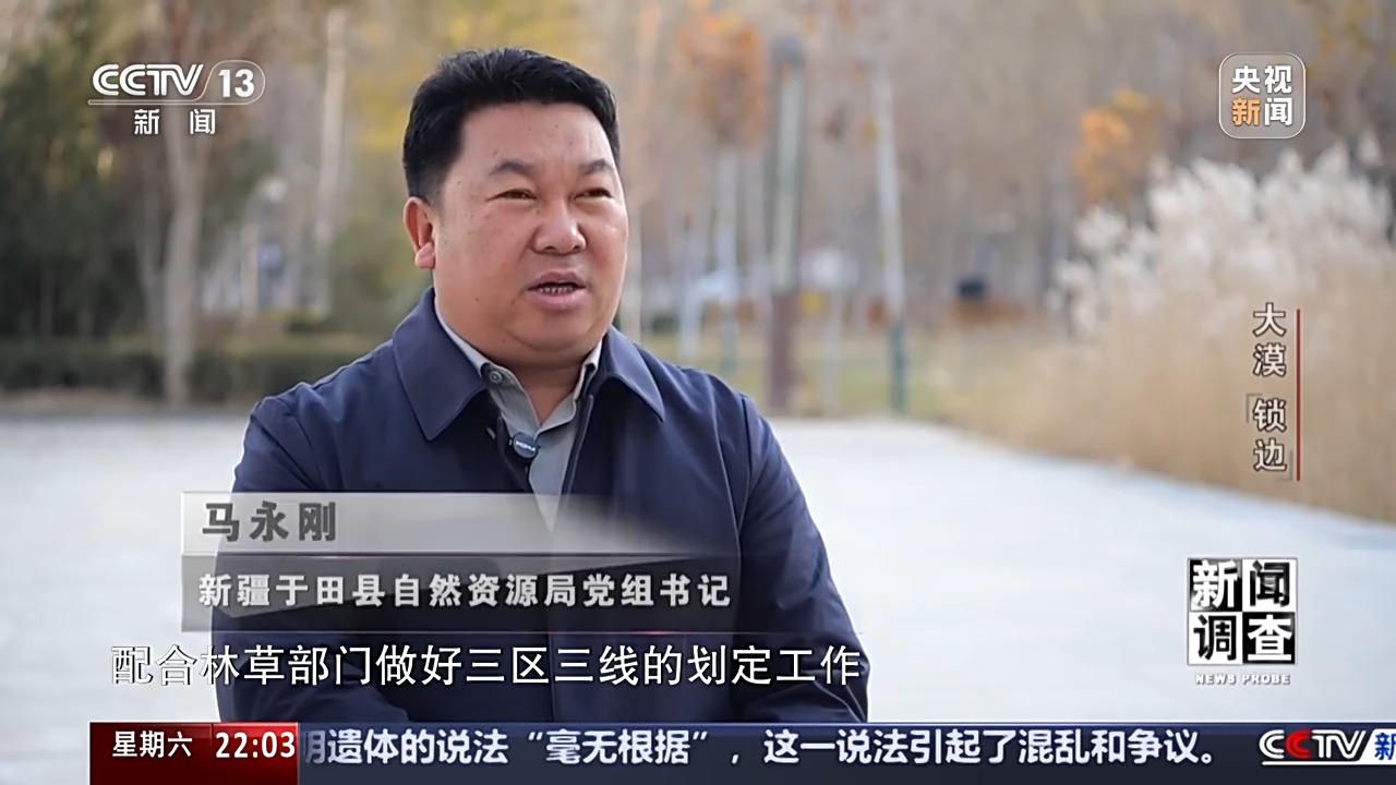 新疆于田縣自然資源局黨組書記 馬永剛:于田縣自然資源局在塔克拉瑪干阻擊戰(zhàn)承擔(dān)的就是項目的選址預(yù)審,配合林草部門做好三區(qū)三線的劃定工作,三線主要審核了在我們的塔克拉瑪干防沙治沙范圍內(nèi)是否占用了基本農(nóng)田,是否占用了生態(tài)紅線,是否存在有礦產(chǎn)壓覆的現(xiàn)象,是否存在一些相關(guān)的土地糾紛問題,進行嚴(yán)格復(fù)核,并由林草、水利等相關(guān)部門同步出具相關(guān)的意見。