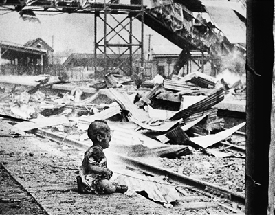 1937年8月28日,日軍轟炸上海南站,鐵軌邊一個(gè)滿(mǎn)身是血的幼兒嚎啕大哭。