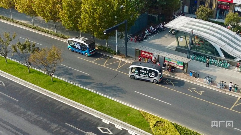 運(yùn)行中的無人小巴車(央廣網(wǎng)記者 王紀(jì)民 攝)