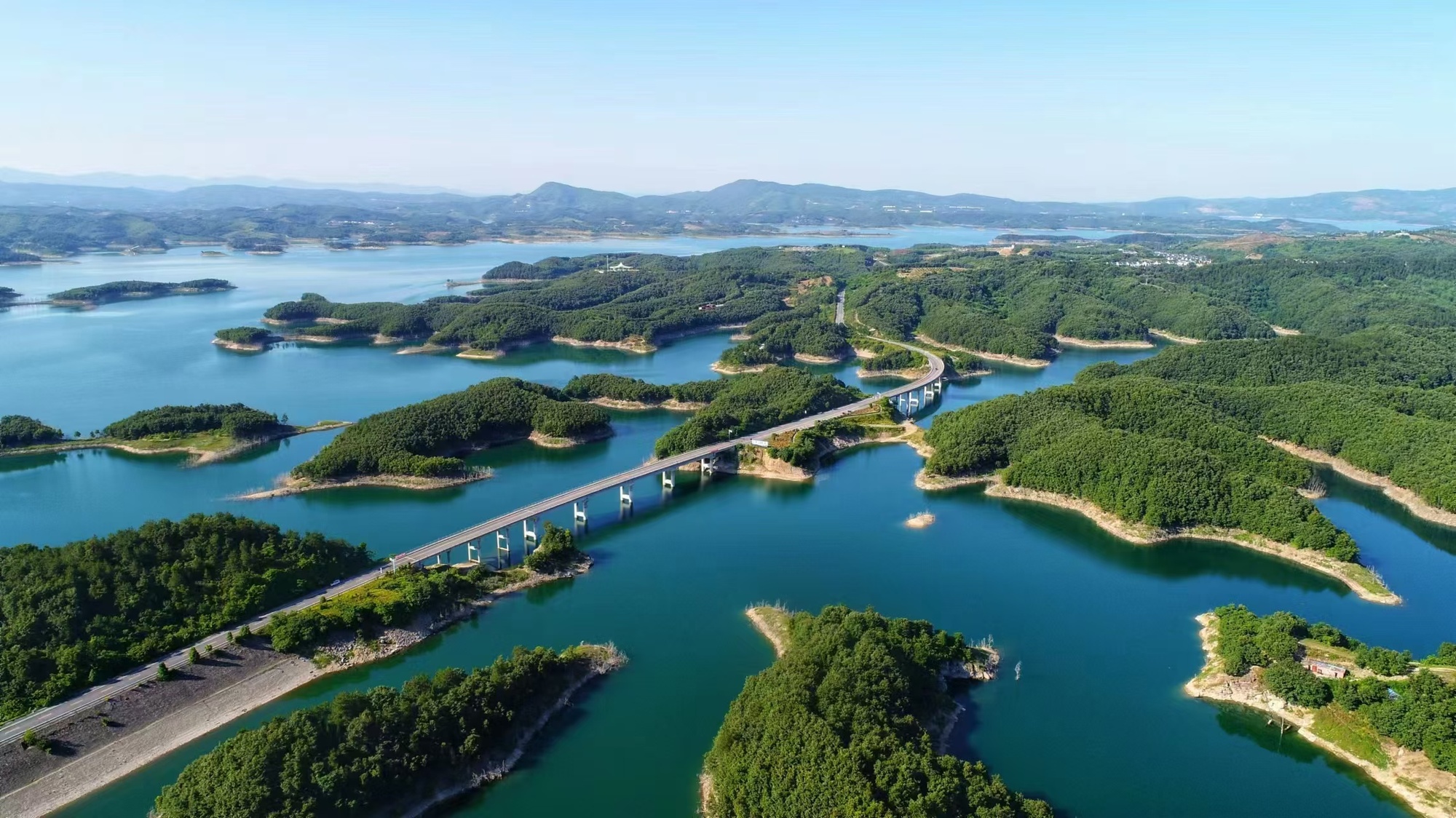 日前,記者駕車駛?cè)胧呤忻┧迎h(huán)線公路,仿佛進(jìn)入了一片天然氧吧,周身被一庫碧水和郁郁蔥蔥的青山環(huán)抱,撲面而來的是清新的自然氣息。