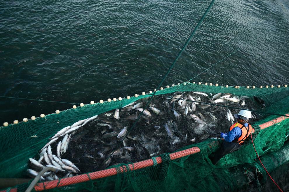 “傳統(tǒng)吊網(wǎng)捕撈會讓虹鱒魚體內因緊張產(chǎn)生更多肌酸。我們現(xiàn)在用吸魚泵連魚帶水直接送入車間,保證魚肉質鮮嫩?!彼f。
