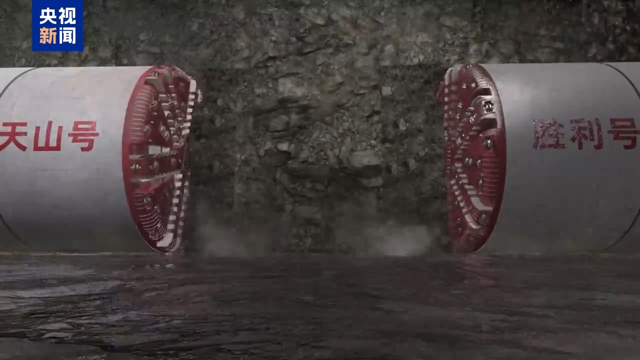 再看工具。兩臺“吞石巨獸”——“天山號”和“勝利號”硬巖掘進機是為打通天山量身定做的。刀盤直徑8.43米,接近3層樓高度。工作時,這對“雙胞胎”從中導(dǎo)洞的兩端朝中間“雙向奔赴”。打通天山可不容易,不僅隧道長度破紀(jì)錄,還要穿越16條地質(zhì)斷裂帶,這就如同在豆腐腦里雕花。特別是在穿越F6地質(zhì)帶時,36天的隧道涌水量,相當(dāng)于近30個標(biāo)準(zhǔn)游泳池的水量,掘進速度一下就踩了急剎車,從每天35米銳減到每天只能走3到5米。