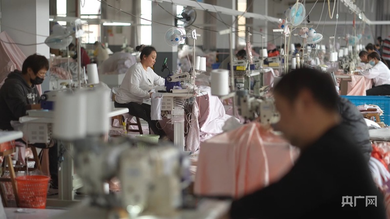 家紡企業(yè)車間里,工人在生產(chǎn)線上忙碌(央廣網(wǎng)記者 楊夢(mèng)奎 攝)