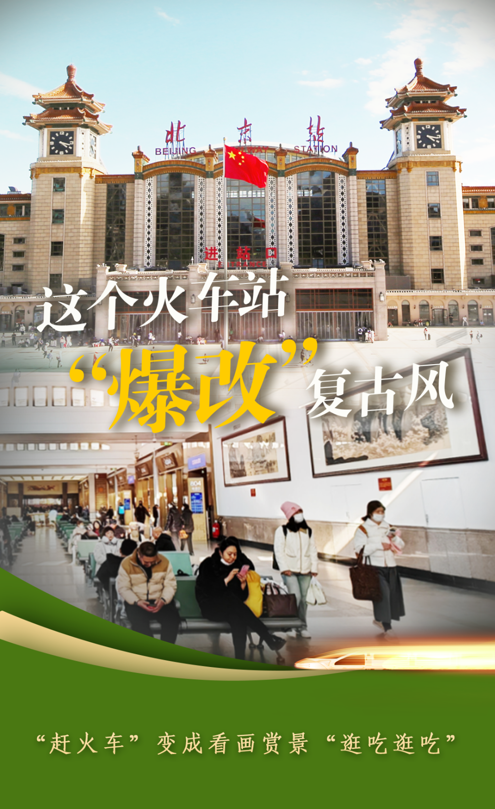 北京站之變折射出中國鐵路之變。文化味濃了,封閉的門拆了,洗手的水熱了,廁所的味沒了。今年春運,全國鐵路發(fā)送旅客有望突破5.1億人次。從“走得了”到“走得好”,中國鐵路正在高質(zhì)量發(fā)展的道路上快步前行。(海報:胡傲霜)