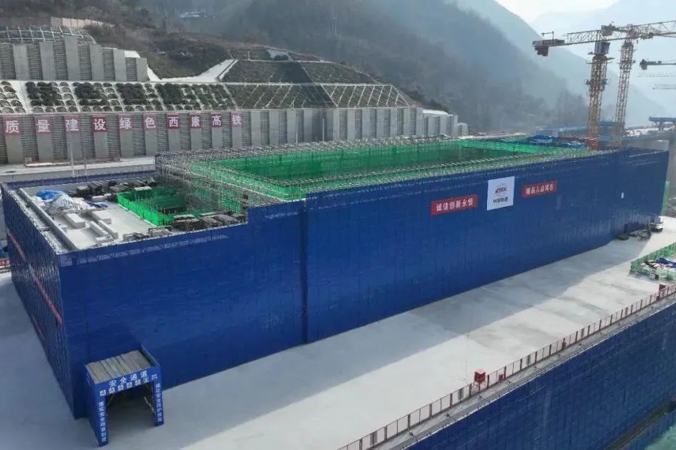 鎮(zhèn)安西站地處秦嶺腹地,施工單位嚴格落實環(huán)保要求,采用鋼制可周轉(zhuǎn)材料施工,減少環(huán)境污染;采取鋼筋加工降噪屏障、灑水車專人降塵等措施,實現(xiàn)環(huán)保達標、綠色高鐵建設目標。