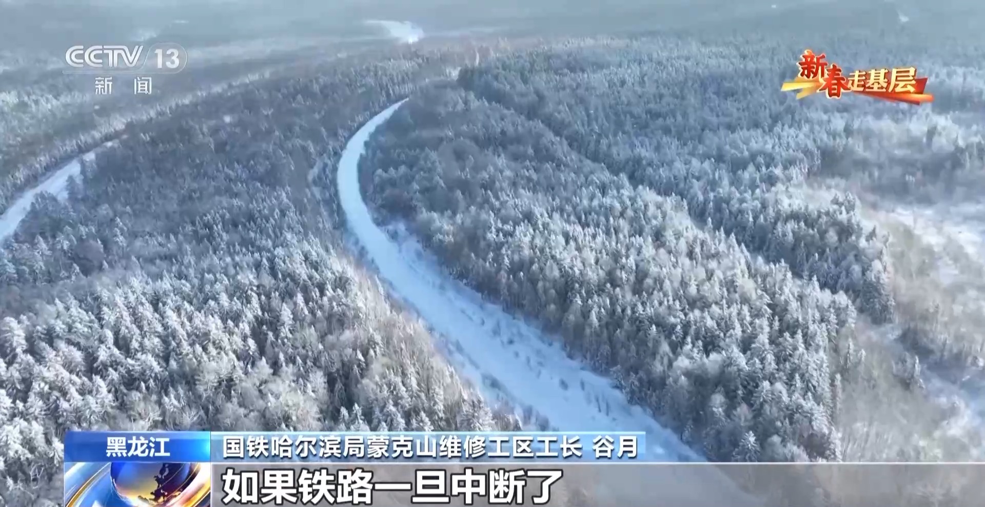 國鐵哈爾濱局蒙克山維修工區(qū)工長 谷月:大雪封山,這種情況下,公路運不進來的東西只能靠鐵路。如果鐵路一旦中斷了,林區(qū)百姓生活或者物資運輸都運不進去,也運不出來。