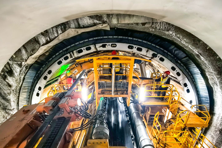 這是2025年1月5日拍攝的引江補(bǔ)漢工程首臺(tái)雙護(hù)盾硬巖掘進(jìn)機(jī)“江漢平安號(hào)”掘進(jìn)施工現(xiàn)場。新華社記者 肖藝九 攝