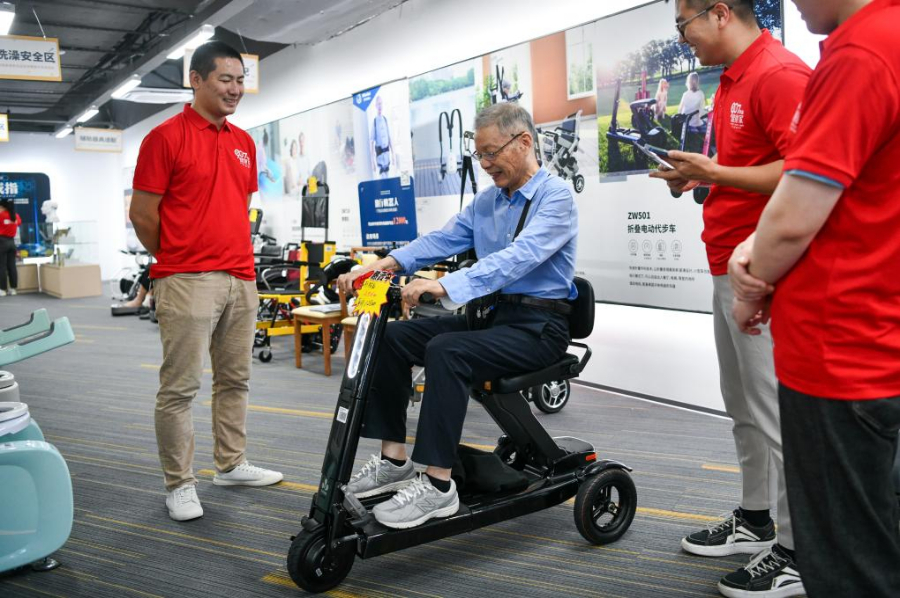 2024年10月12日,一名老人在體驗(yàn)折疊電動(dòng)代步車。位于深圳的老年用品商場(chǎng)“深業(yè)·健康匯”向市民開(kāi)放,展示居家安全、娛樂(lè)生活、智能照護(hù)等50余個(gè)品類、數(shù)百種智能居家適老產(chǎn)品,吸引眾多市民前來(lái)了解、選購(gòu)。新華社記者梁旭 攝