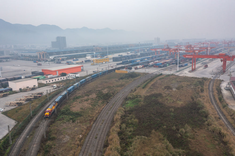 1月17日,一列滿載糖果等歐洲商品的中歐班列年貨專列順利抵達重慶團結村中心站。新華社記者 黃偉 攝