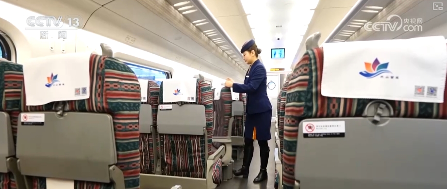 國(guó)鐵烏魯木齊局烏魯木齊客運(yùn)段C845次列車(chē)員阿依江介紹,動(dòng)車(chē)座椅上的這個(gè)犄角叫“羊角把”,是旋轉(zhuǎn)座椅的“小把手”。當(dāng)動(dòng)車(chē)組列車(chē)抵達(dá)終點(diǎn)站,再返程時(shí)列車(chē)運(yùn)行方向變了。為了讓旅客面向列車(chē)前進(jìn)的方向,這樣視覺(jué)更加舒適,他們會(huì)在終點(diǎn)站把座椅旋轉(zhuǎn)180度。像這樣腳踩座椅下方的旋轉(zhuǎn)腳踏,再用手抓住“羊角把”,輕輕一拉就能調(diào)轉(zhuǎn)座椅方向。