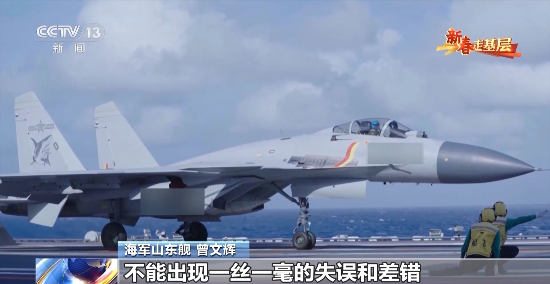 海軍山東艦 曾文輝:從我們放飛到完成放飛,可能就幾秒鐘的時(shí)間,你需要在這幾秒鐘時(shí)間完成現(xiàn)場(chǎng)環(huán)境、我們的裝備還有艦載機(jī)一系列問(wèn)題的確認(rèn)。確認(rèn)它們的狀態(tài)以后,你還需要做一個(gè)最準(zhǔn)確的決斷。你需要面對(duì)艦載機(jī)那種強(qiáng)大的壓迫力,克服掉膽怯的心理。