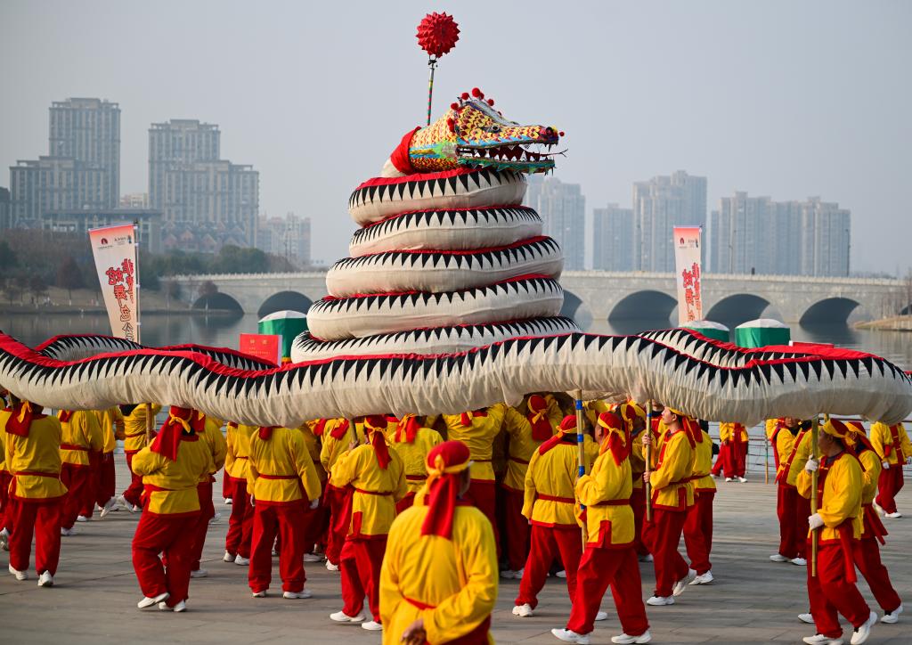 “出燈啦!”隨著一聲號令,鼓樂齊鳴,長達(dá)128米的“肥東洋蛇燈”起身游走,光彩靈動。蛇年春節(jié)臨近,安徽省合肥市肥東縣的和睦湖畔,通體流光的洋蛇燈在夜色中時(shí)而昂首,似騰空而去,時(shí)而垂頭,如蓄勢待發(fā)。