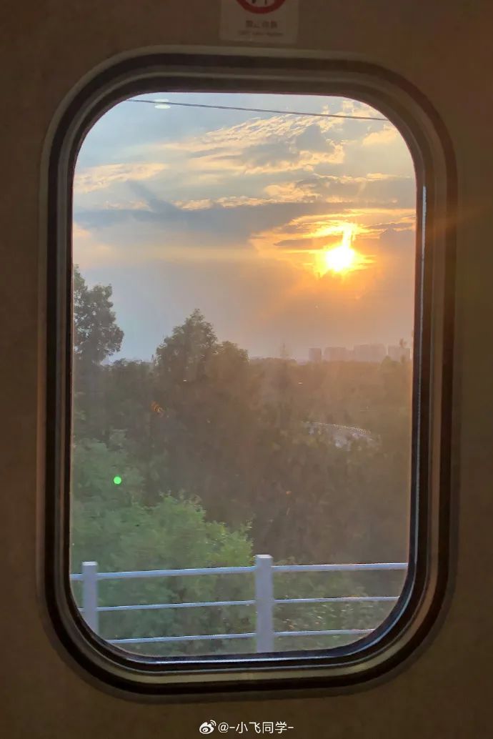 車窗外的晚霞。