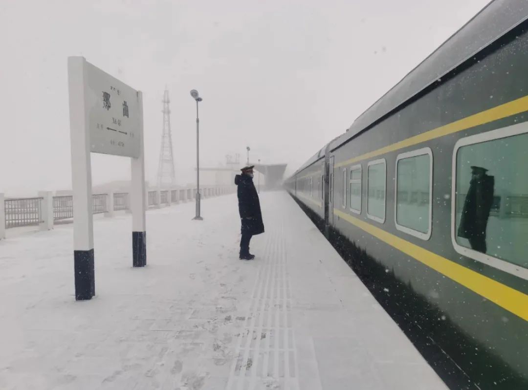 不畏高寒缺氧,那曲站客運員在海拔4513米接車。