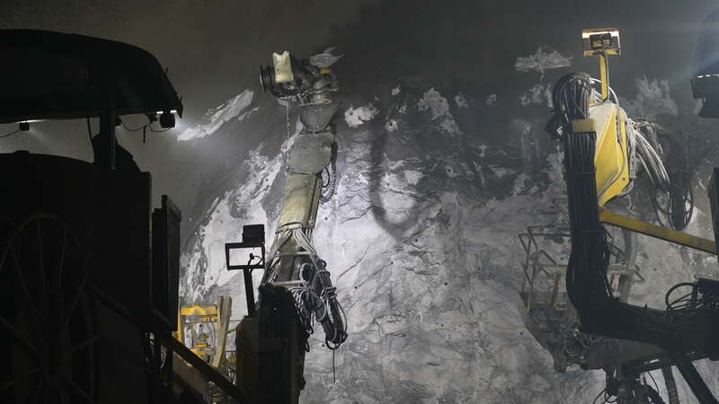 G219線昭溫公路(昭蘇至溫宿)西天山特長隧道內(nèi),施工員操縱機(jī)器作業(yè)。中青報·中青網(wǎng)記者 陳曉/攝