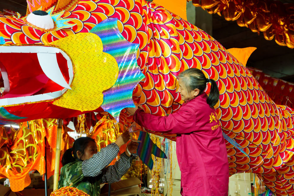 1月24日,城南龍燈廠2024年以來(lái)生產(chǎn)的第一萬(wàn)條傳統(tǒng)龍燈,從陳列館中被“請(qǐng)”出。