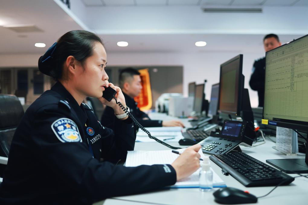 指揮中心,民警李思雨在接聽(tīng)電話(huà)。新華社記者 任沁沁 攝