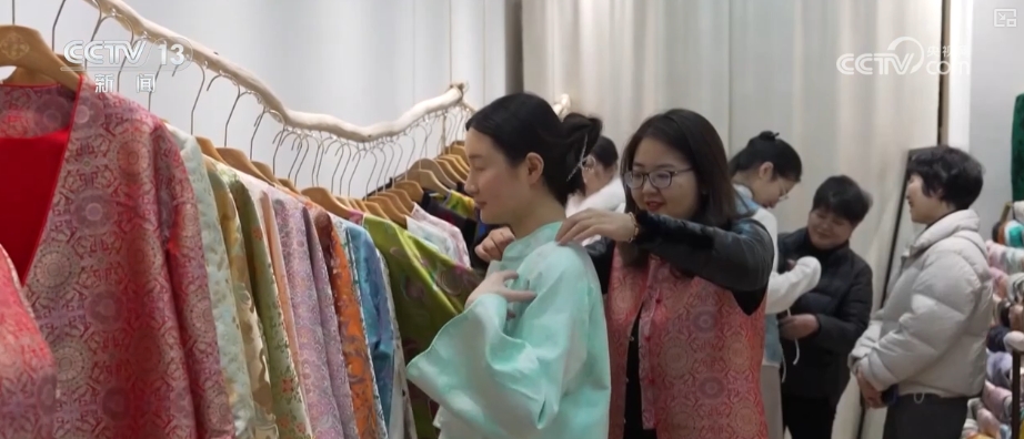 在浙江杭州的一家新中式服裝定制店內(nèi),不少年輕顧客正在試穿、挑選。