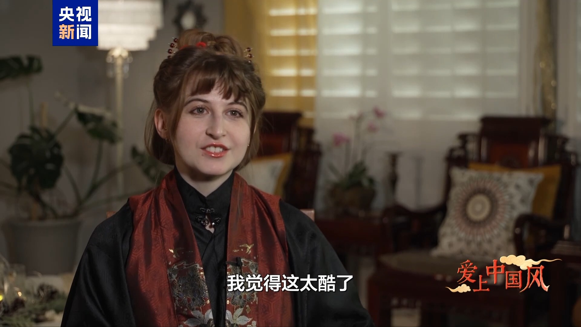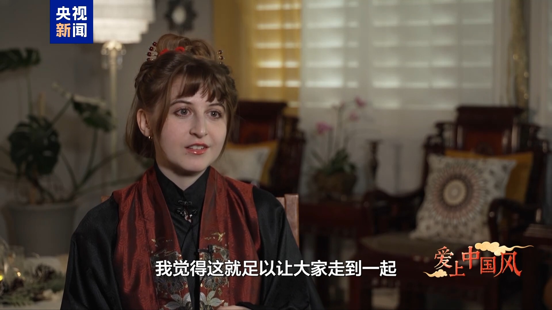 瑞秋:我在瀏覽網(wǎng)站的時(shí)候,我非常喜歡瀏覽時(shí)尚視頻,當(dāng)時(shí)看到了一個(gè)關(guān)于中國(guó)漢服的視頻,我當(dāng)時(shí)想這是什么?他們說,這是漢服的復(fù)興,年輕人正在把它帶回來。我覺得這太酷了。