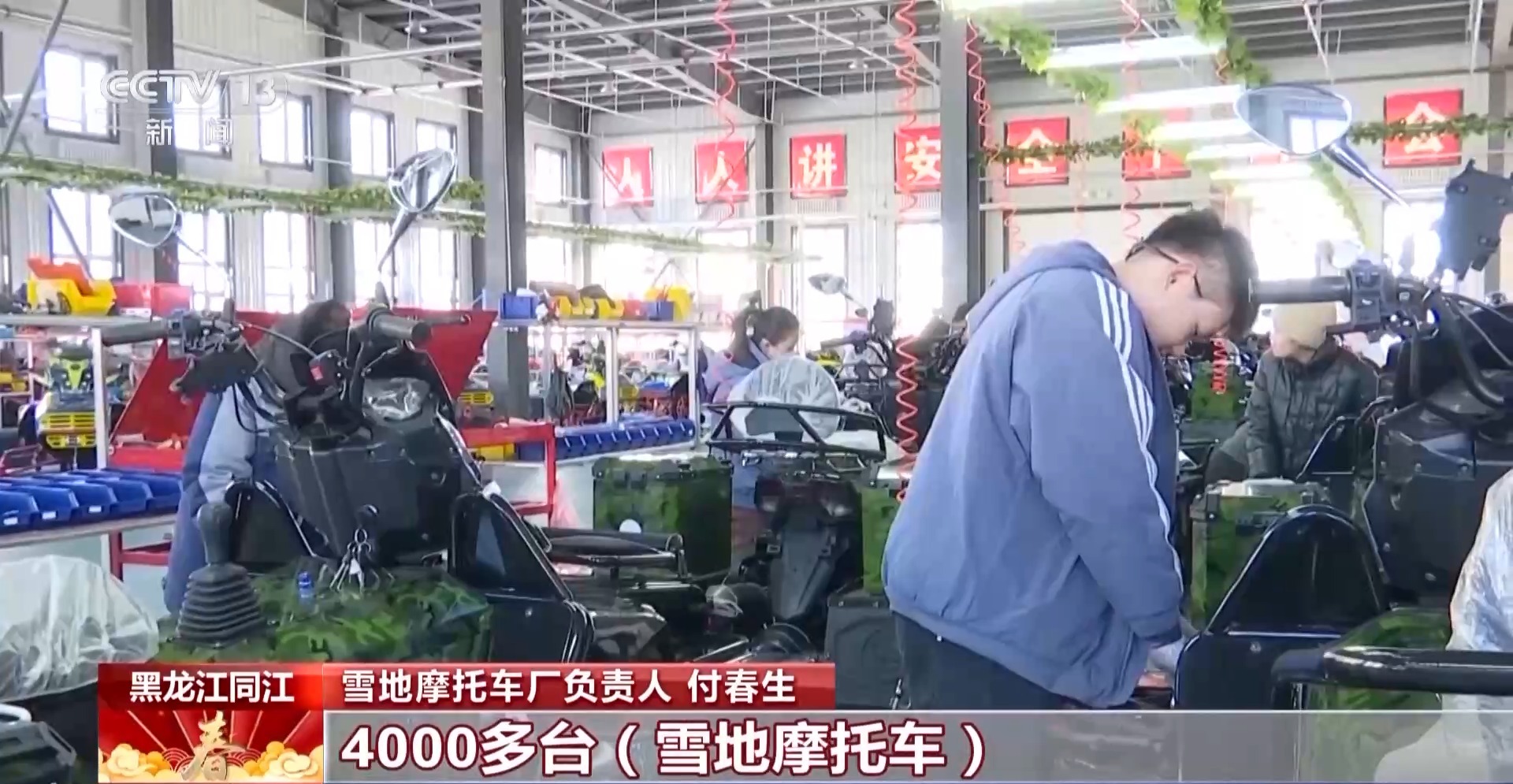 雪地摩托車廠負責人 付春生:去年我們接了很多訂單,2025年訂單我們已經(jīng)接4000多臺雪地摩托車了,其中國外的是3000多臺,主要是俄羅斯,還有東歐國家。