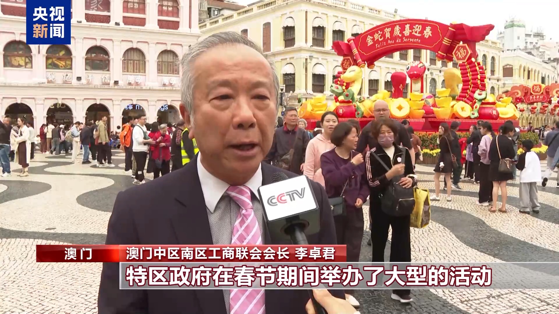 澳門中區(qū)南區(qū)工商聯(lián)會會長 李卓君:特區(qū)政府在春節(jié)期間舉辦了大型的活動,比如花車巡游、煙花表演以及金龍獻(xiàn)瑞巡游,都讓游客很有新鮮感。