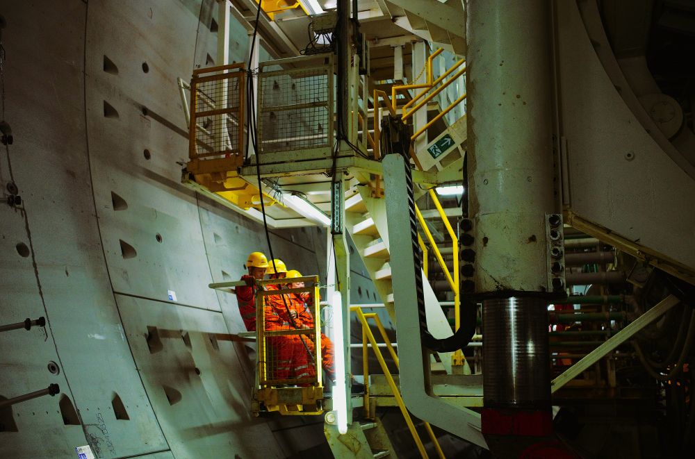 向隧道深處走去,正在作業(yè)的“山河號(hào)”盾構(gòu)機(jī)出現(xiàn)在記者眼前。作為在建世界最大直徑水下盾構(gòu)隧道的掘進(jìn)機(jī)械,開挖直徑達(dá)到17.5米的“山河號(hào)”盾構(gòu)機(jī)是世界在建最大直徑泥水平衡盾構(gòu)機(jī)。