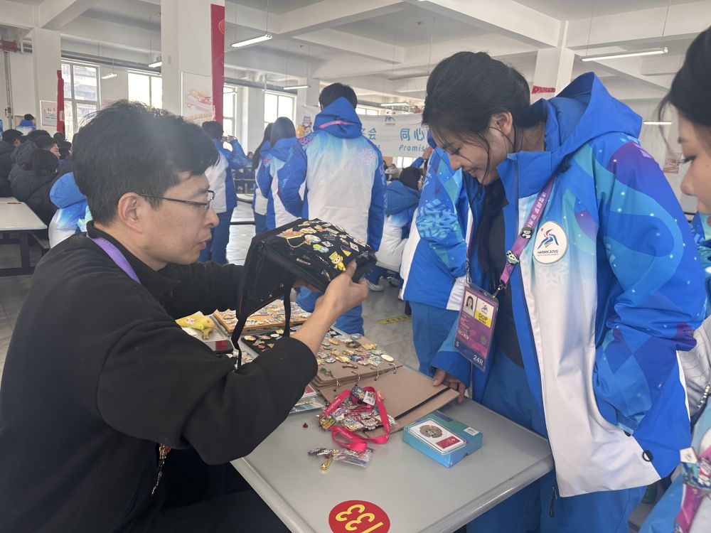 新華社哈爾濱2月13日電(記者戴錦镕、魏婧宇、馬思嘉)“你好,換‘pin’嗎?”在哈爾濱第九屆亞冬會(huì)各個(gè)場(chǎng)館,經(jīng)常能聽(tīng)到以換“pin”破冰的對(duì)話。