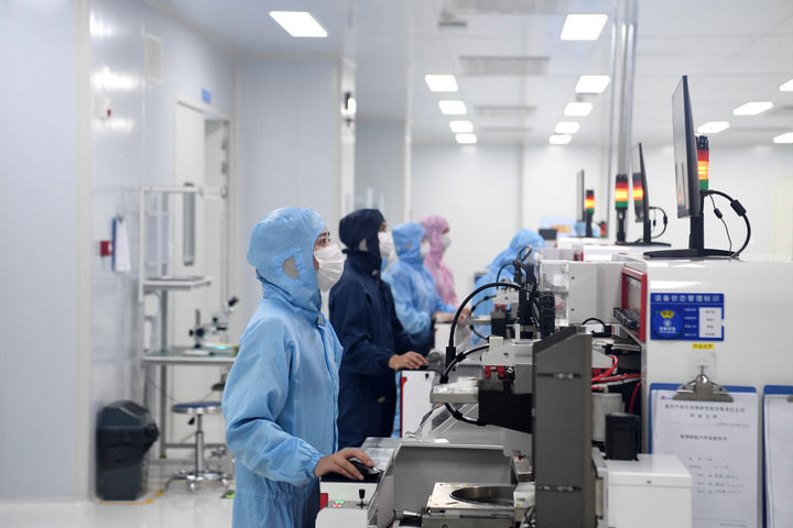 2024年5月10日,技術(shù)人員在重慶平創(chuàng)半導(dǎo)體研究院生產(chǎn)線(xiàn)上忙碌。新華社發(fā)(曾清龍攝)