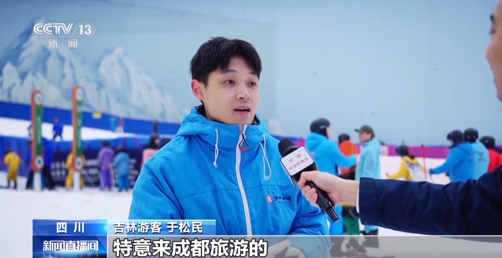 吉林游客 于松民:我是從吉林來的,特意來成都旅游的。然后就想特意體驗一下成都市內(nèi)的滑雪場,沒有想到今天在這兒看到這么大的一個滑雪場。