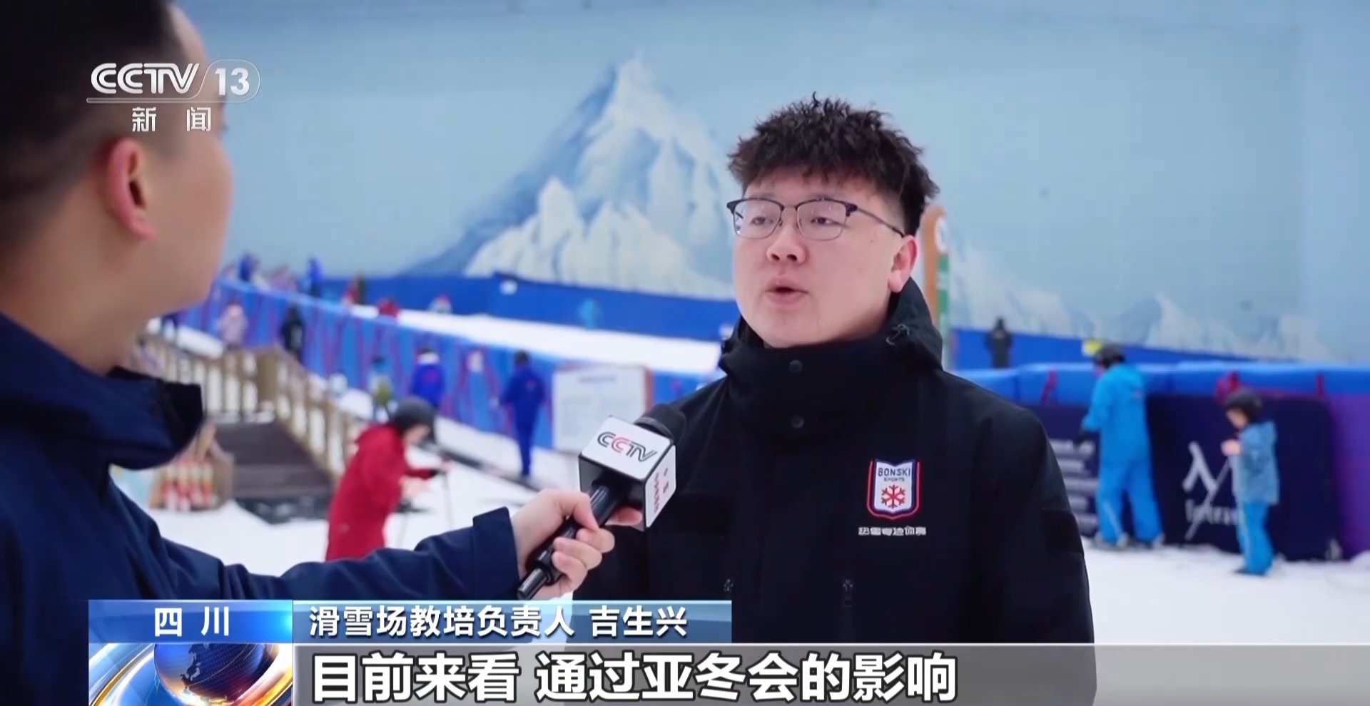 滑雪場教培負責人 吉生興:目前來看,通過亞冬會的影響,人數(shù)和客流從原來的每天一兩千人上漲到了現(xiàn)在四五千人。
