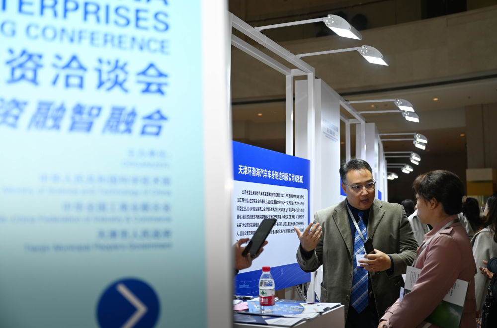 2024年11月13日,與會(huì)嘉賓在天津舉行的2024中國(guó)民營(yíng)企業(yè)投融資洽談會(huì)上對(duì)接洽談。新華社記者 趙子碩 攝