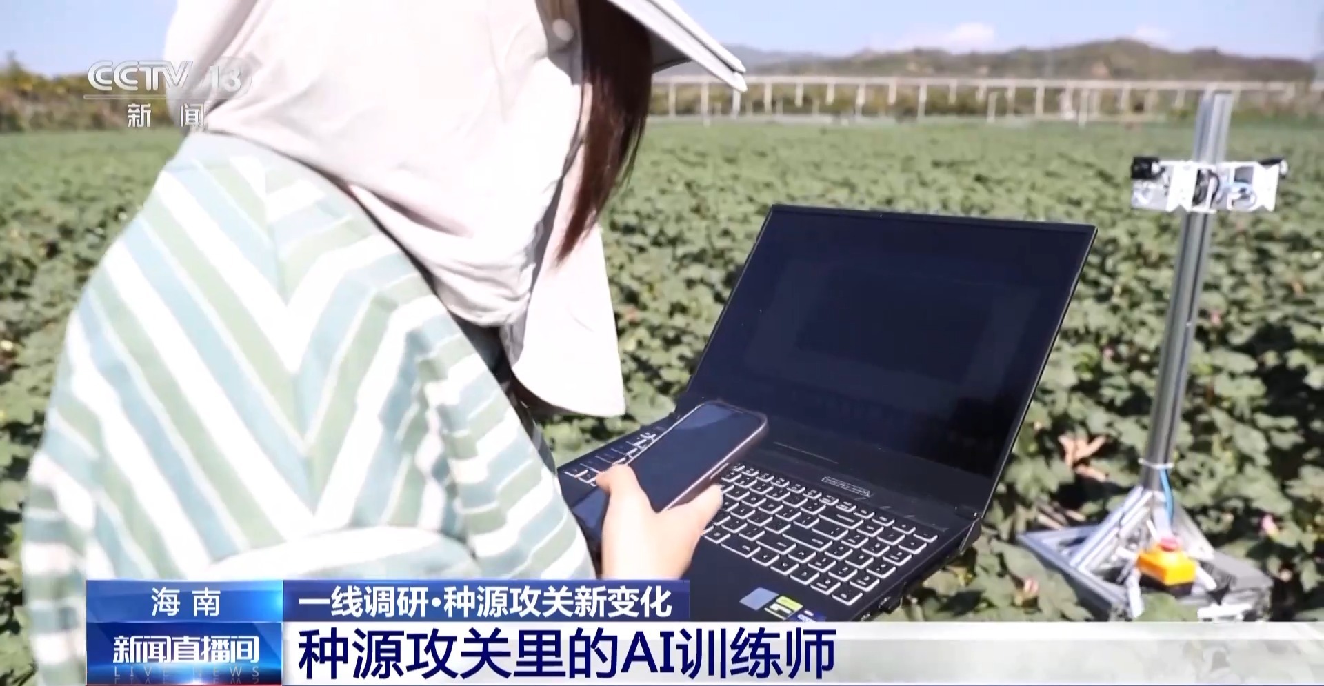 在南繁基地的這塊棉花田里,我們看到這樣的場景,一群年輕人在操作著機器人,帶著筆記本電腦,給棉花植株拍視頻。他們也被稱為農(nóng)田里的AI訓練師。