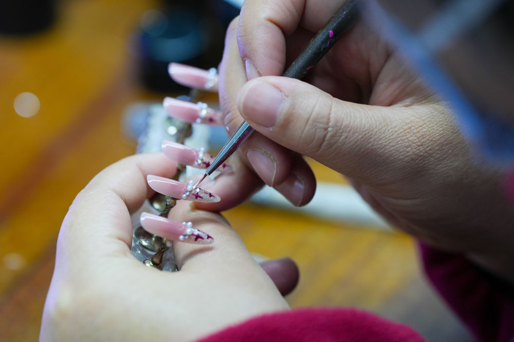 以指尖為畫布,色彩、花紋在方寸之間跳躍,一副副充滿創(chuàng)意的手工穿戴甲,不僅成為愛美人士的穿搭新寵,也孕育著數(shù)十億元的“美麗產(chǎn)業(yè)”。