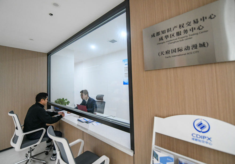 2月27日,民營企業(yè)工作人員在成都知識(shí)產(chǎn)權(quán)交易中心成華區(qū)服務(wù)中心咨詢相關(guān)政策。新華社記者 王曦 攝