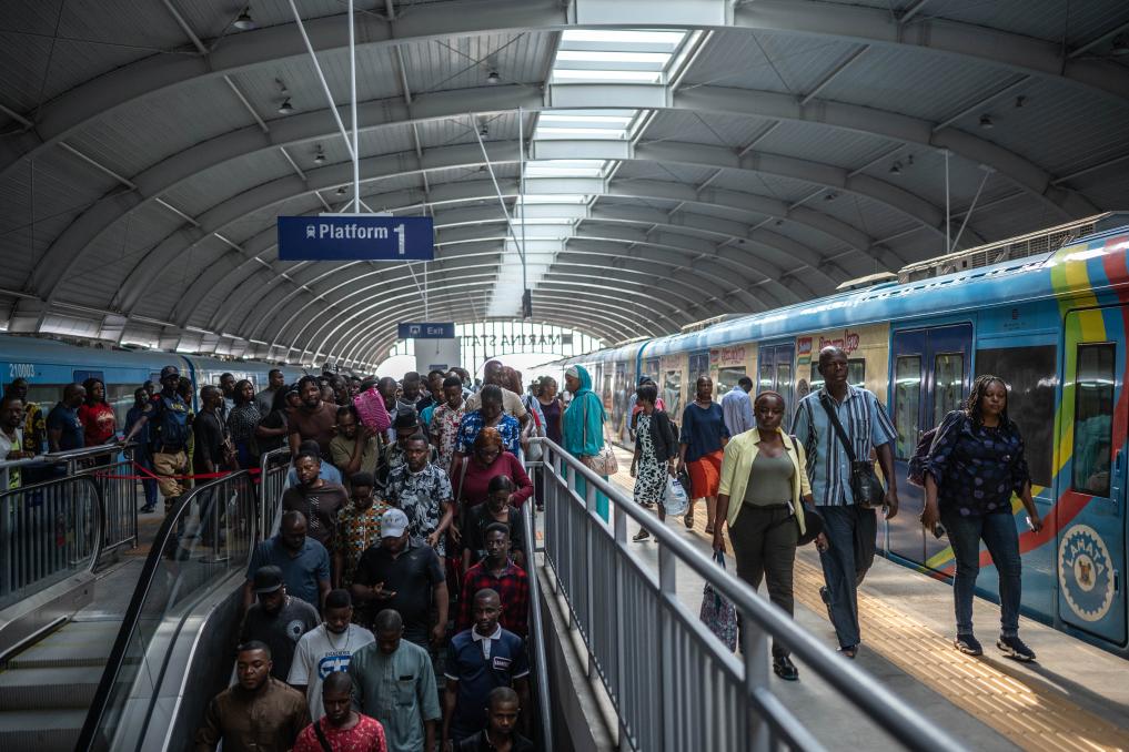 2024年12月2日,在尼日利亞拉各斯,乘客走在輕軌藍(lán)線的站臺上。拉各斯輕軌藍(lán)線是西非地區(qū)首條由中國企業(yè)自主設(shè)計、建造、施工、運(yùn)營的電氣化城市軌道交通項目。新華社記者 王冠森 攝
